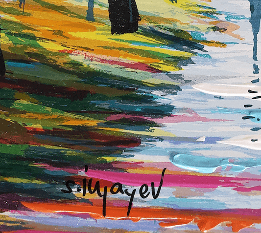 Slava Ilyayev Original Oil Painting Impasto Colorful Art Framed 29.5" x 34" Rainbow Path Stroll