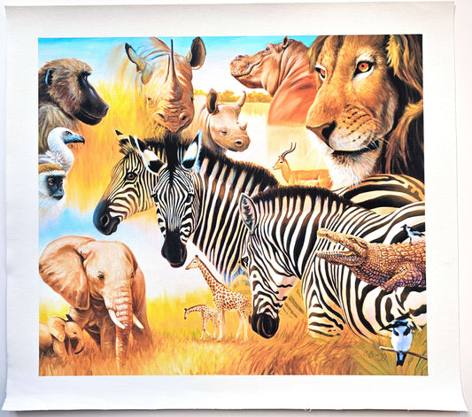 Charles Lynn Bragg "African Animal Montage" hand signed numbered art on canvas
