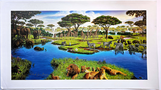Charles Lynn Bragg "African Watering Hole" hand signed numbered art on canvas