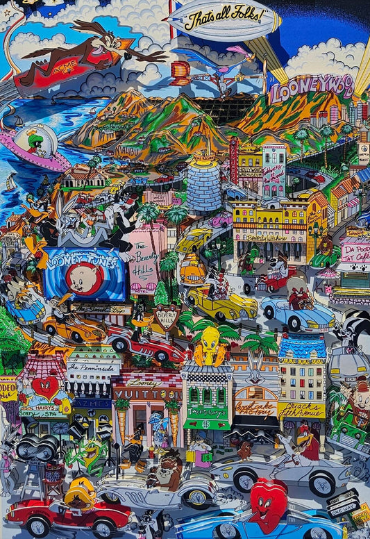 Charles Fazzino, "Looneywood" Framed 3D Limited Edition Hand Signed Art