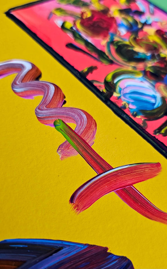 Peter Max "Flowers in Vase" Original Painting unique variation original mixed media Hand Signed