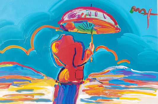 Peter Max Umbrella Man At Sea Original Painting Hand Signed
